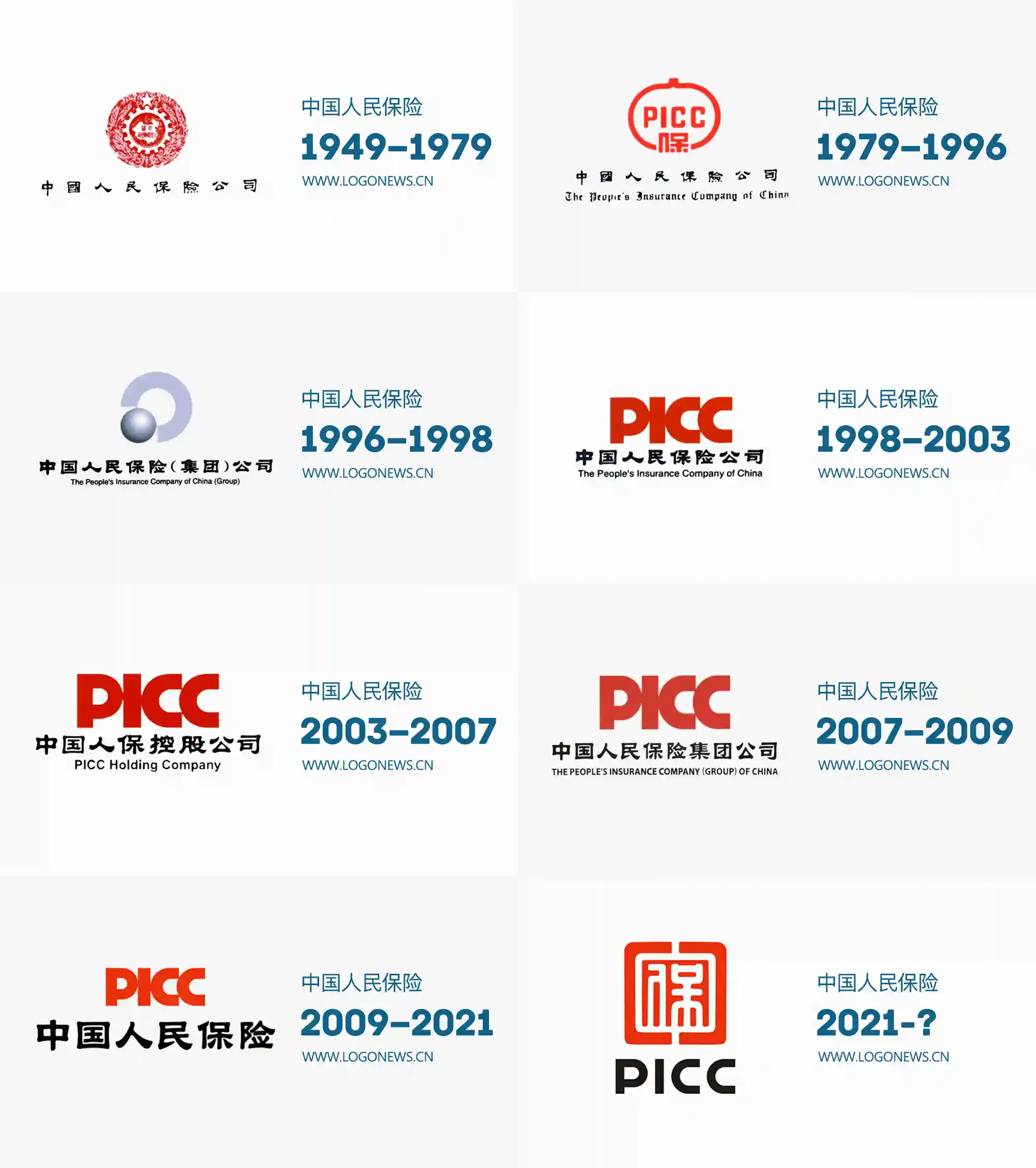1996年,第三版LOGO發(fā)布,是個(gè)抽象的「P」字圖形。并品牌色根據(jù)業(yè)務(wù)有所不同。例如集團(tuán)采用灰色,人壽為綠色,財(cái)產(chǎn)保險(xiǎn)為金黃色。不過(guò)立體的造型和復(fù)雜的顏色在印刷上增加了不少成本。1998年,第四版LOGO放棄了原來(lái)的圓環(huán)和球體造型,改成了緊湊簡(jiǎn)單的「PICC」字標(biāo),在推廣應(yīng)用方面比上一版好太多了。后來(lái)雖然有多次名稱(chēng)上的調(diào)整,但紅色的「PICC」一直用到了今天。