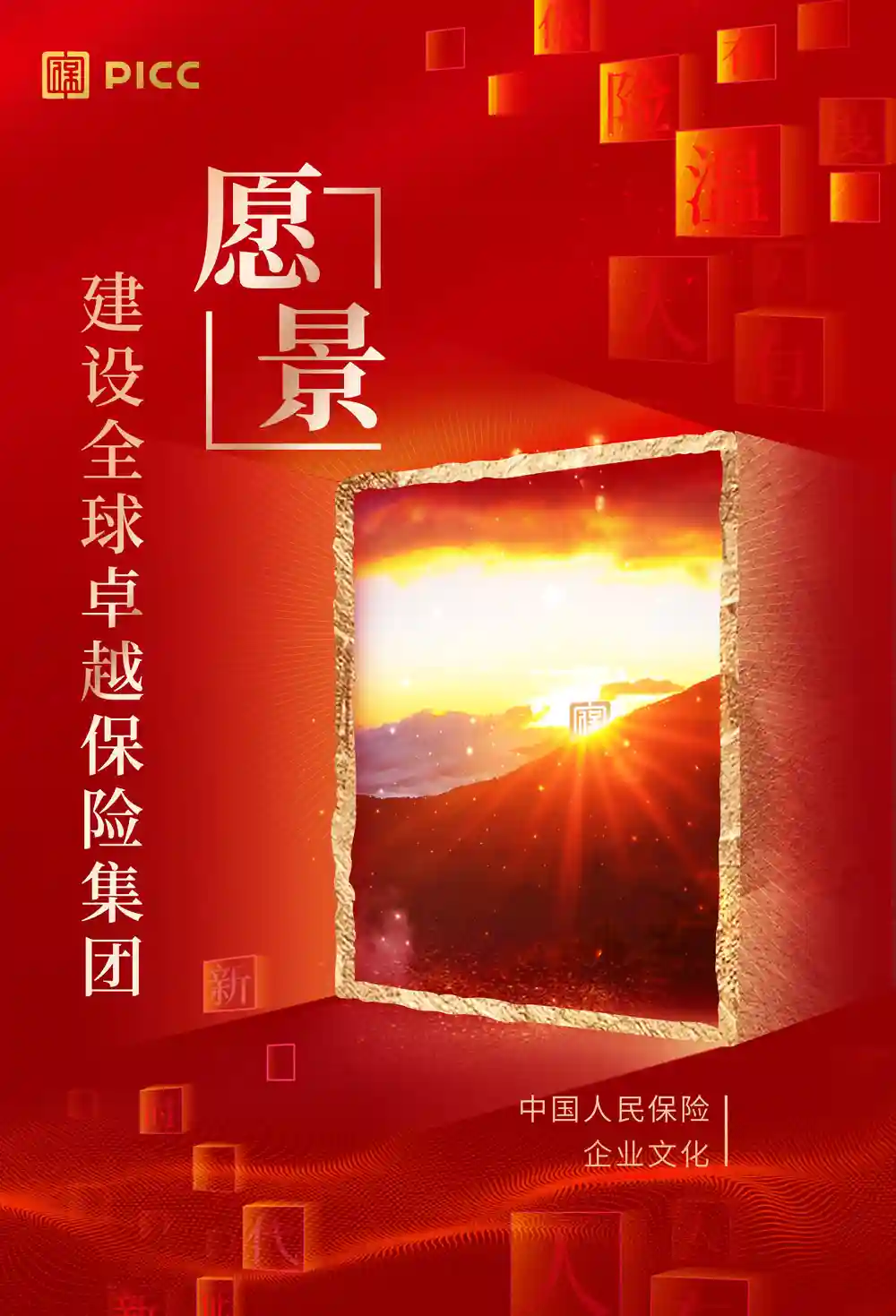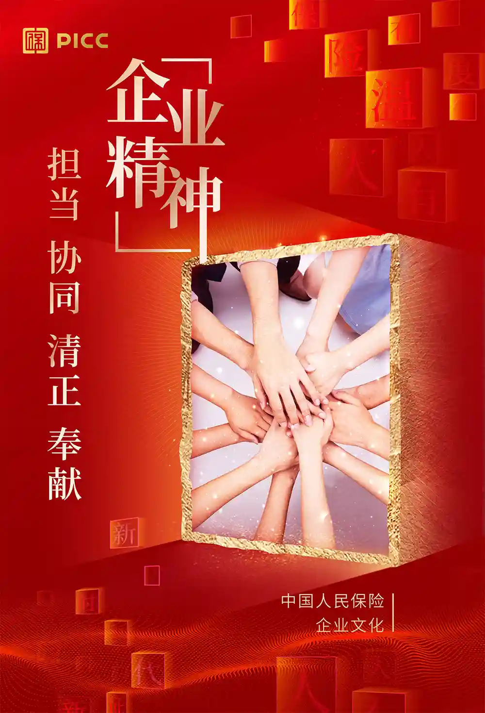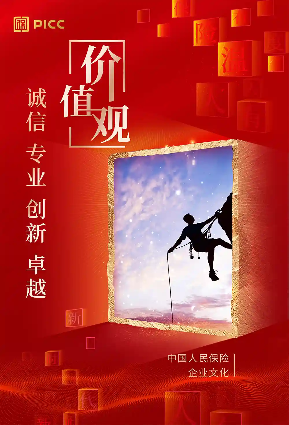 LOGO設(shè)計(jì)整體是一枚紅色中國(guó)印,并將篆體字「?!挂园孜牡男问角度搿钢小棺种行模纬梢粋€(gè)緊湊方正的圖形符號(hào)。其次英文「PICC」字體不再像之前那樣黏在一起,而是變細(xì)并拉開(kāi)了字間距。中文標(biāo)準(zhǔn)字貌似沒(méi)有更改,繼續(xù)用了之前的隸書(shū)(2007年其次引入的字體)。