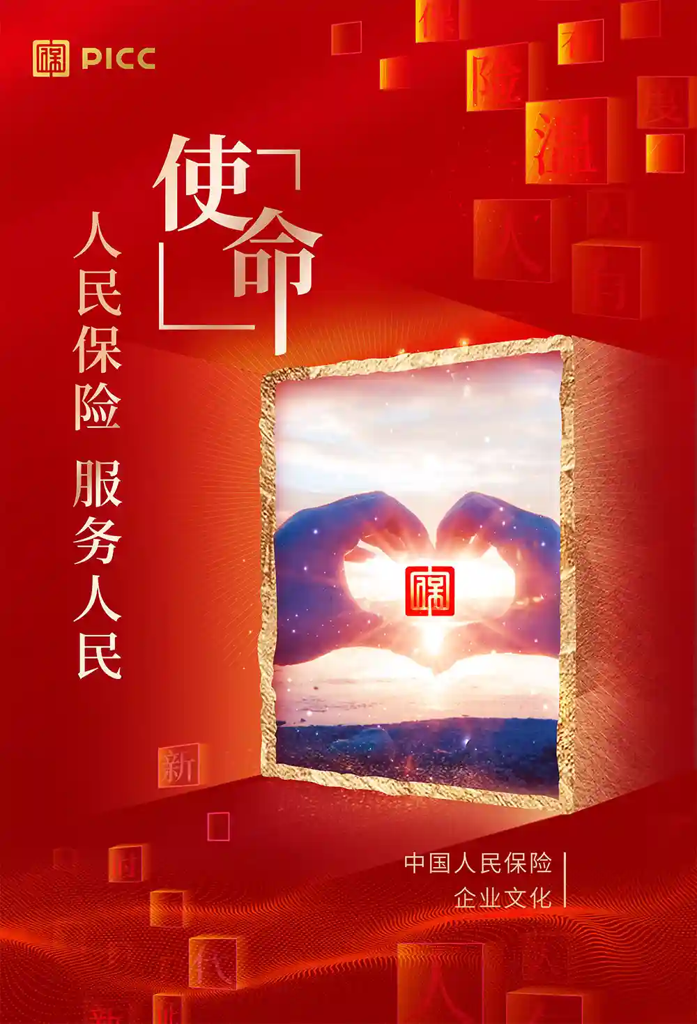此次換新最核心部分是引入了印章圖形標(biāo)志,而在這之前,中國(guó)人保只有紅色的PICC和黑色的隸書(shū)「中國(guó)人民保險(xiǎn)」組合的字標(biāo)在使用。