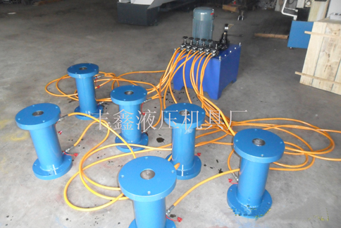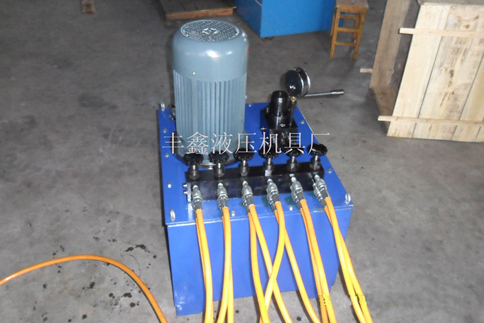 一臺電動泵帶六支千斤頂,形成同步頂升。電動泵帶千斤頂,是由分配閥輸出油管達到托二.托三.托四.托五.托六.托八,托十六,三十二等因此可以節省時間使用起來比較方便.可以直接對壓力容器進行壓力測試。配以常用工具可以進行起重.彎曲.校直.擠壓.剪切.鉚焊.頂升.拉直.拆裝.沖孔.建筑鋼筋擠壓連接,可以根據客戶要求設計生產.